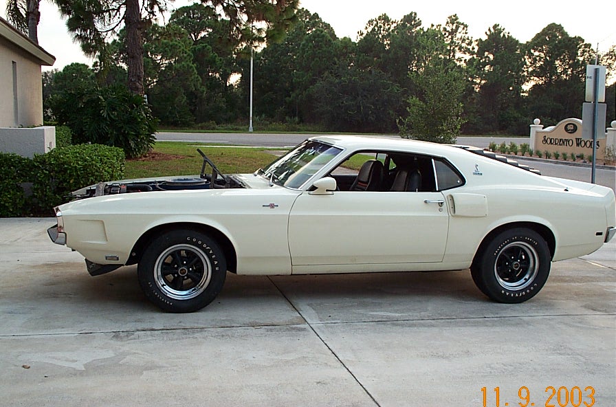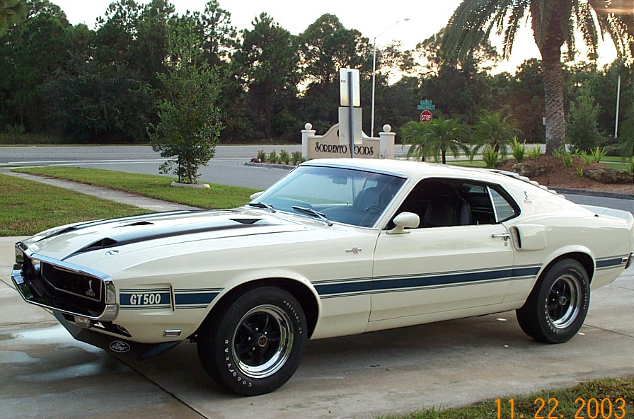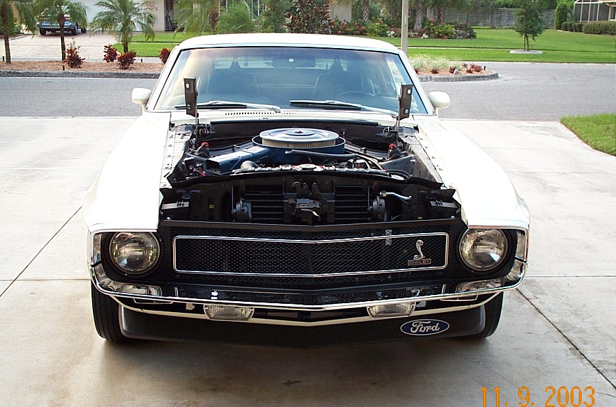 NOVEMBER 9th - Took the Shelby for a test drive around the subdivision. It leaked fuel and coolant. Tightened those things up. Set the timing to 6 degrees BTDC, adjusted the carb and enjoyed the purr of that massive 428 cubic inch motor. Even without the stripes on the side or the hood in place yet, it still looks fast sitting still.