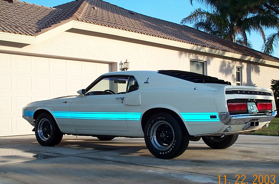 The past two weeks I have painted the hood stripes, installed the side stripes (new old stock), had the front end aligned at the local Ford dealer, got an estimate for the exhaust system, put the hood and trim back on and taken several short rides in the Shelby. This is a great hobby! Enjoy the ride! |